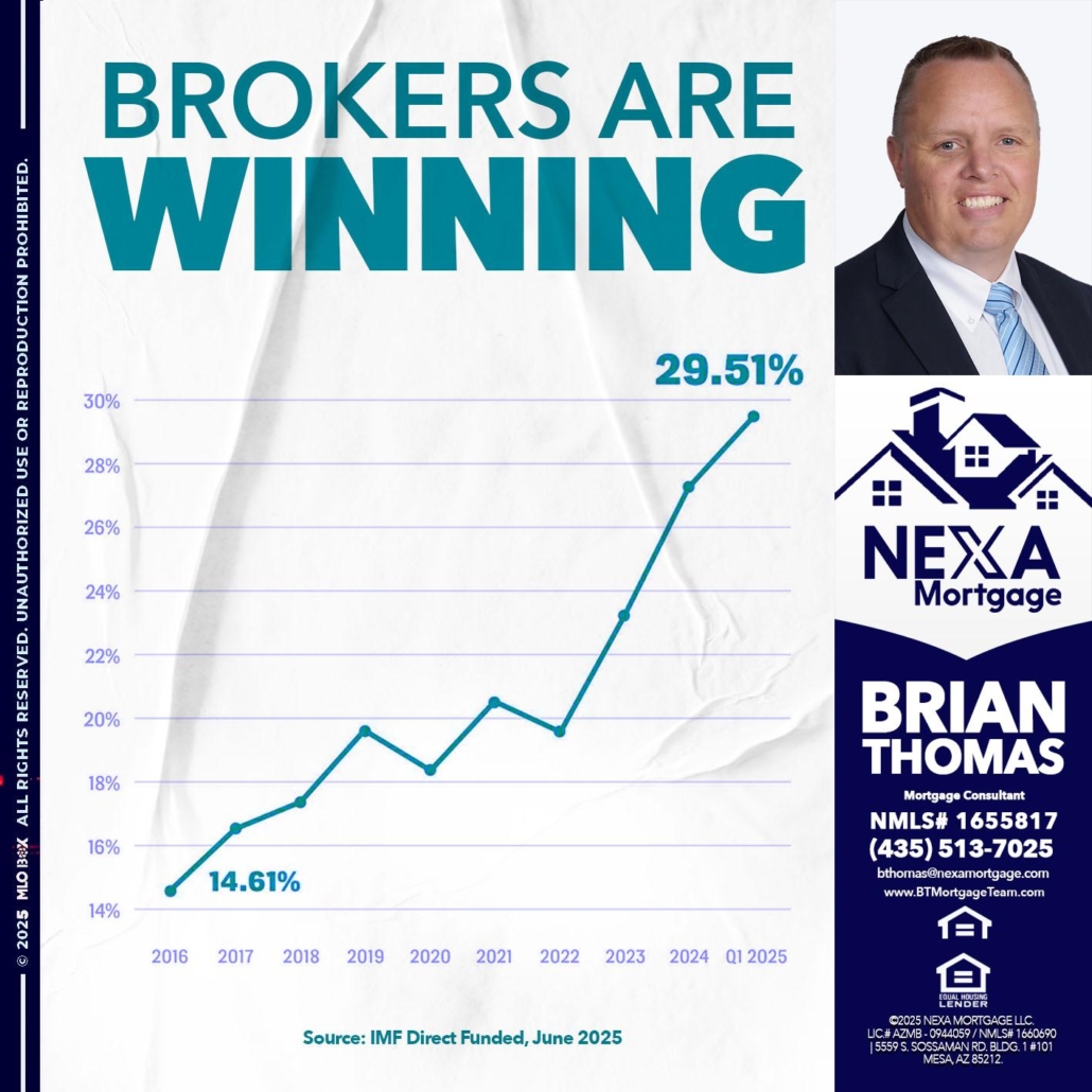 Hi, my name is Brian Thomas. I’m a Loan Officer with NEXA Mortgage LLC., offering personalized mortgage solutions, fast customized quotes, great rates and service with integrity.
