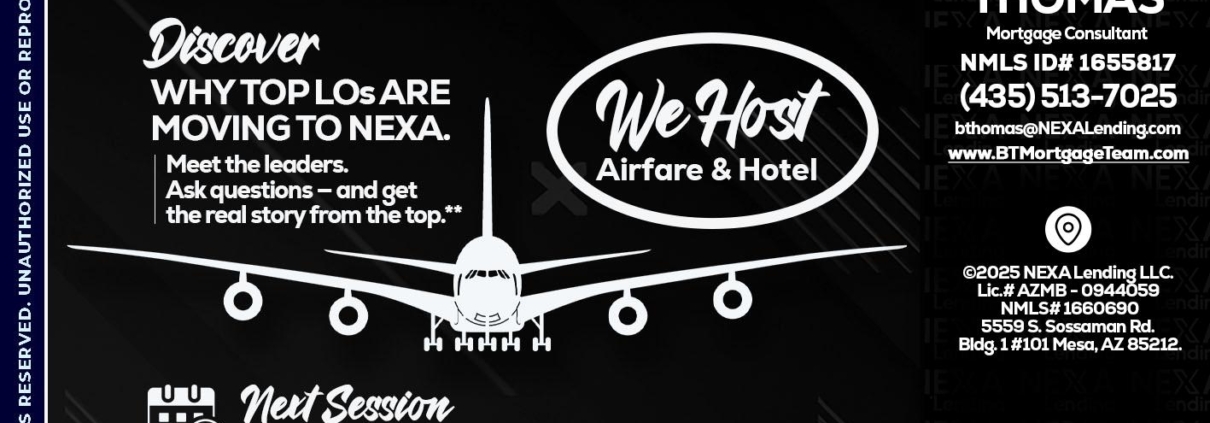 Hi, my name is Brian Thomas. I’m a Loan Officer with NEXA Mortgage LLC., offering personalized mortgage solutions, fast customized quotes, great rates and service with integrity.