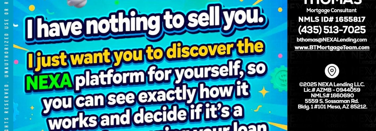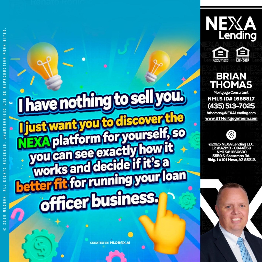 I HAVE NOTHING - Brian Thomas -Mortgage Loan OriginatorHi, my name is Brian Thomas. I’m a Loan Officer with NEXA Lending LLC., offering personalized mortgage solutions, fast customized quotes, great rates and service with integrity.