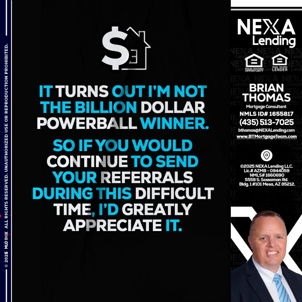 Hi, my name is Brian Thomas. I’m a Loan Officer with NEXA Lending LLC., offering personalized mortgage solutions, fast customized quotes, great rates and service with integrity.