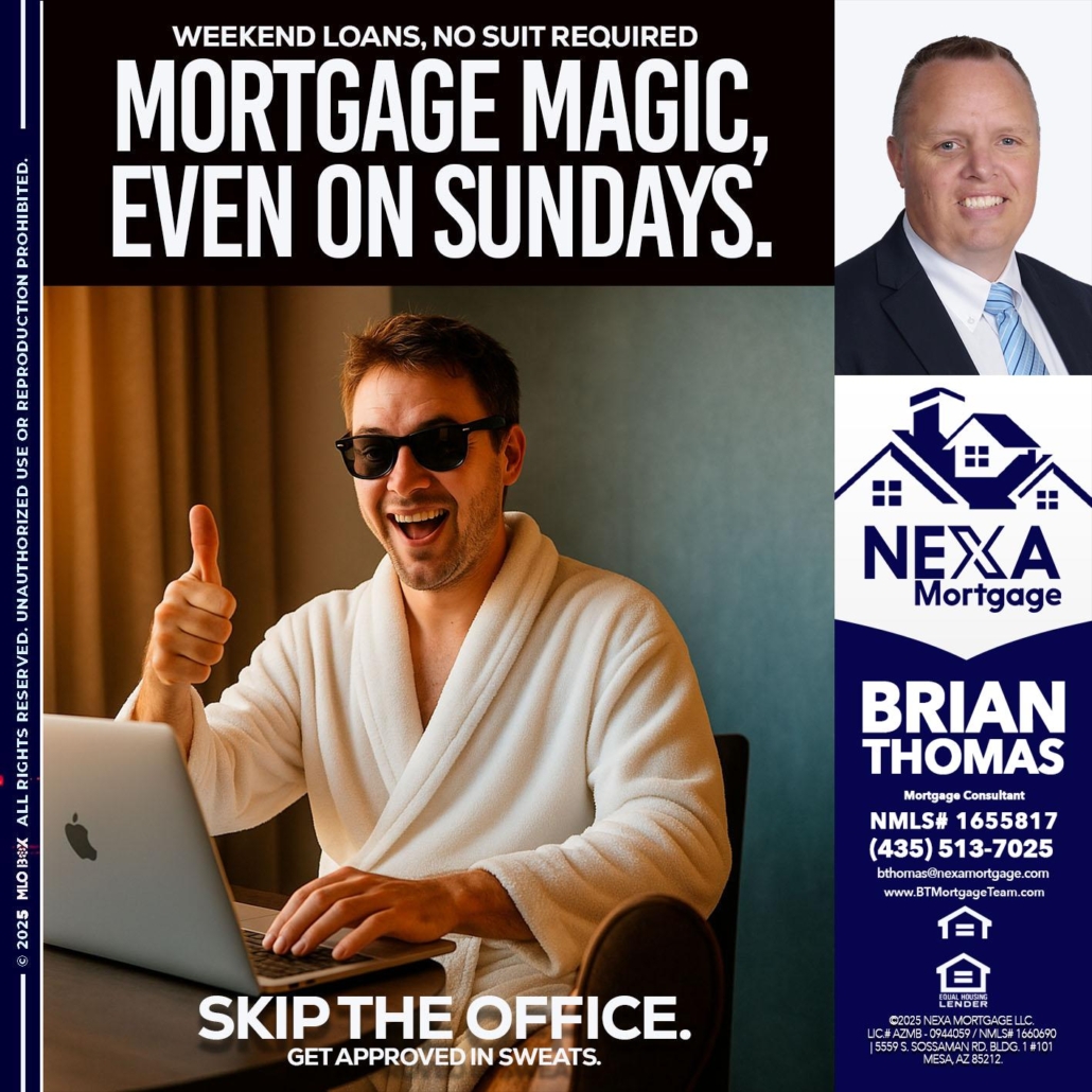 Hi, my name is Brian Thomas. I’m a Loan Officer with NEXA Mortgage LLC., offering personalized mortgage solutions, fast customized quotes, great rates and service with integrity.