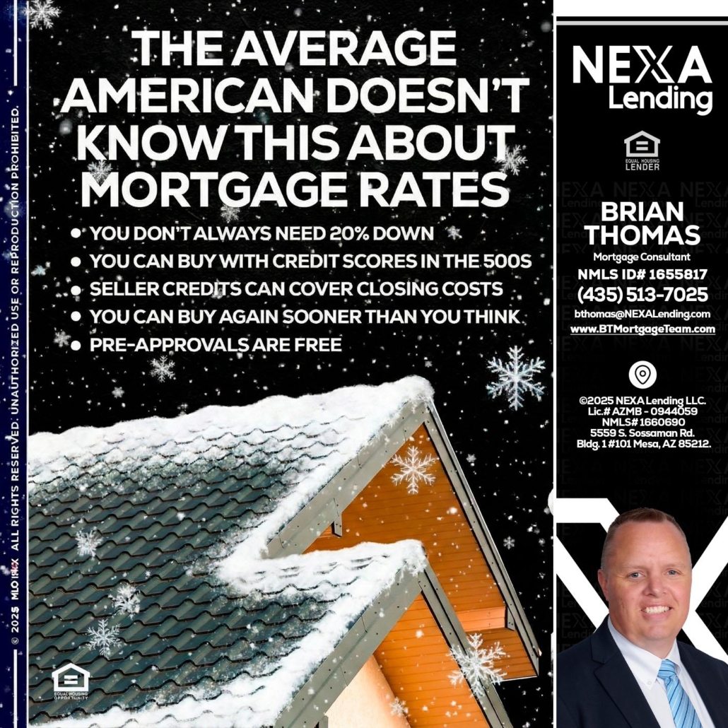 Hi, my name is Brian Thomas. I’m a Loan Officer with NEXA Lending LLC., offering personalized mortgage solutions, fast customized quotes, great rates and service with integrity.