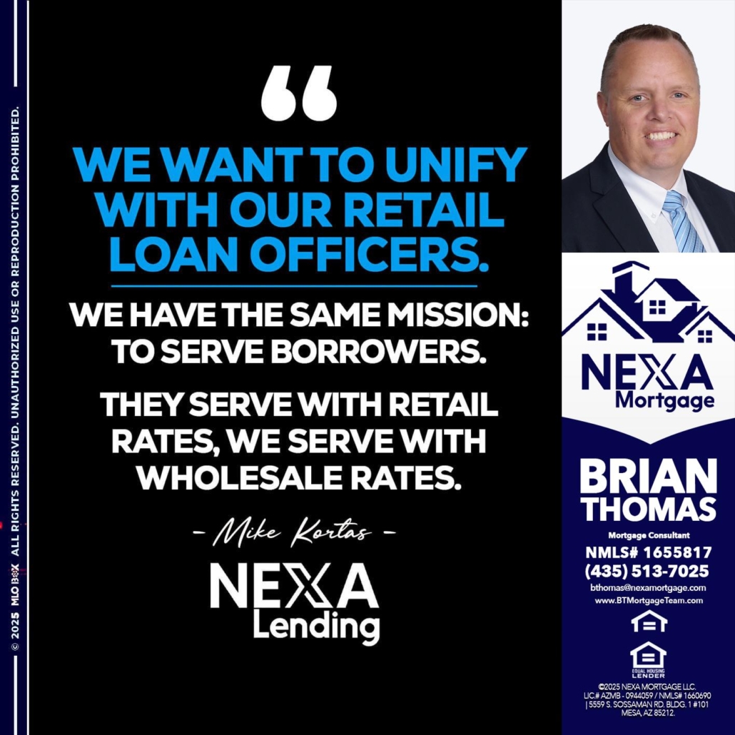 Hi, my name is Brian Thomas. I’m a Loan Officer with NEXA Mortgage LLC., offering personalized mortgage solutions, fast customized quotes, great rates and service with integrity.