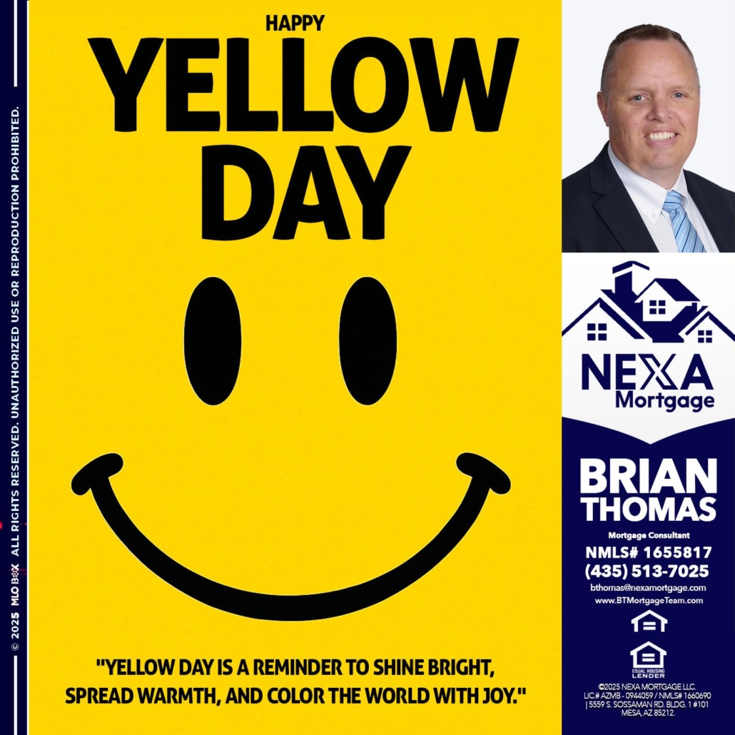YELLOW DAY - Brian Thomas -Mortgage Loan OriginatorHi, my name is Brian Thomas. I’m a Loan Officer with NEXA Mortgage LLC., offering personalized mortgage solutions, fast customized quotes, great rates and service with integrity.