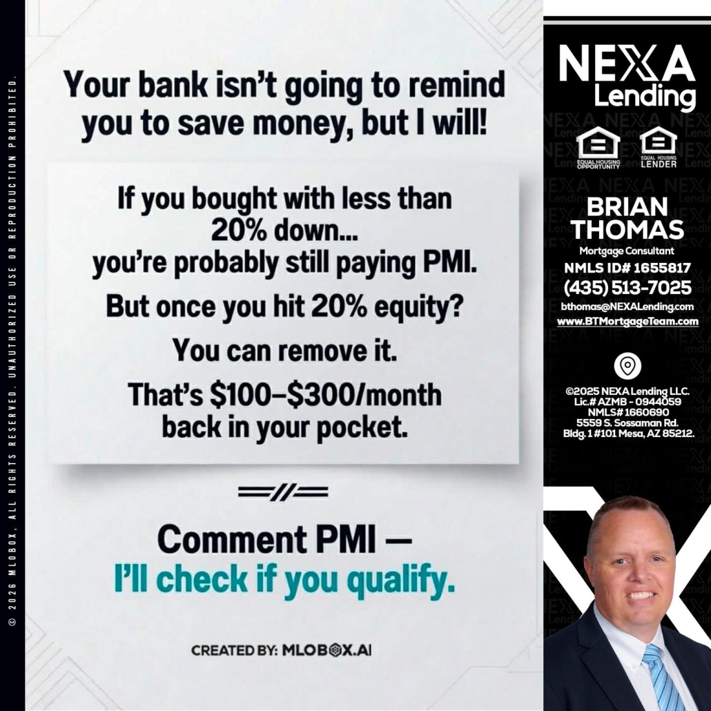 Hi, my name is Brian Thomas. I’m a Loan Officer with NEXA Lending LLC., offering personalized mortgage solutions, fast customized quotes, great rates and service with integrity.